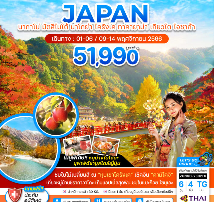 NAGANO MATSUMOTO NAGOYA KORANKEI TAKAYAMA KYOTO OSAKA 6 วัน 4 คืน