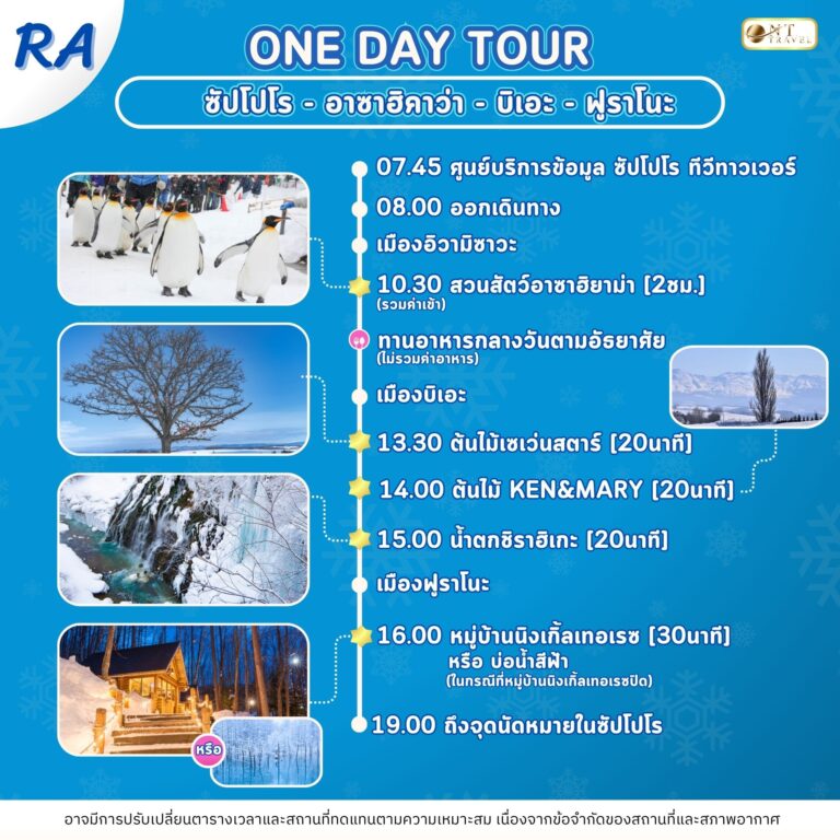 วันเดย์ทัวร์ :ซัปโปโร-ฮาซาฮีคาว่า-บิเอะ-ฟุราโน่