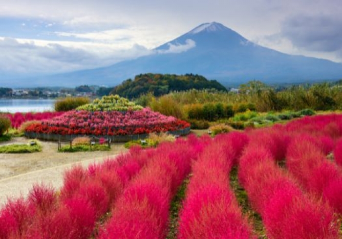 สวนดอกไม้ริมทะเลสาบคาวากุจิโกะเป็นหนึ่งในจุดชมวิวภูเขาไฟฟูจิที่ได้รับความนิยมมากที่สุด ไฮไลท์ของที่นี่คือ ทุ่งดอกไม้ที่เปลี่ยนสีสันไปตามฤดูกาล กว่า 90 ชนิด ซึ่งได้รับการดูแลให้ผลัดเปลี่ยนกันบานตลอดทั้งปี บรรยากาศร่มรื่น พร้อมเส้นทางเดินชมวิวระยะทาง 350 เมตร ที่ทอดยาวเลียบทะเลสาบให้เราได้เพลิดเพลินไปกับความงามของธรรมชาติและทุ่งดอกไม้