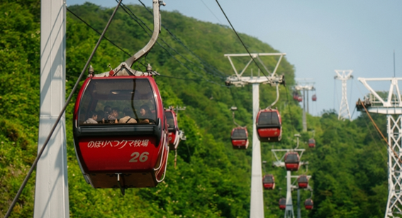 นั่งกระเช้าลอยฟ้า Ropeway ที่ทั้งสะดวกและได้วิวสวยแบบเต็มตา กระเช้าสามารถรองรับผู้โดยสาร ออกถี่ทุก ๆ 15 วินาที ใช้เวลาเพียงประมาณ 7 นาที ก็จะพาคุณไต่ระดับขึ้นสู่ยอดเขาสูงกว่า 1,260 เมตร ระหว่างทางสามารถชมวิวธรรมชาติของโนโบริเบ็ตสึจากมุมสูงได้แบบพาโนรามา ทั้งป่าเขาและบรรยากาศโดยรอบที่สวยงามตลอดเส้นทาง