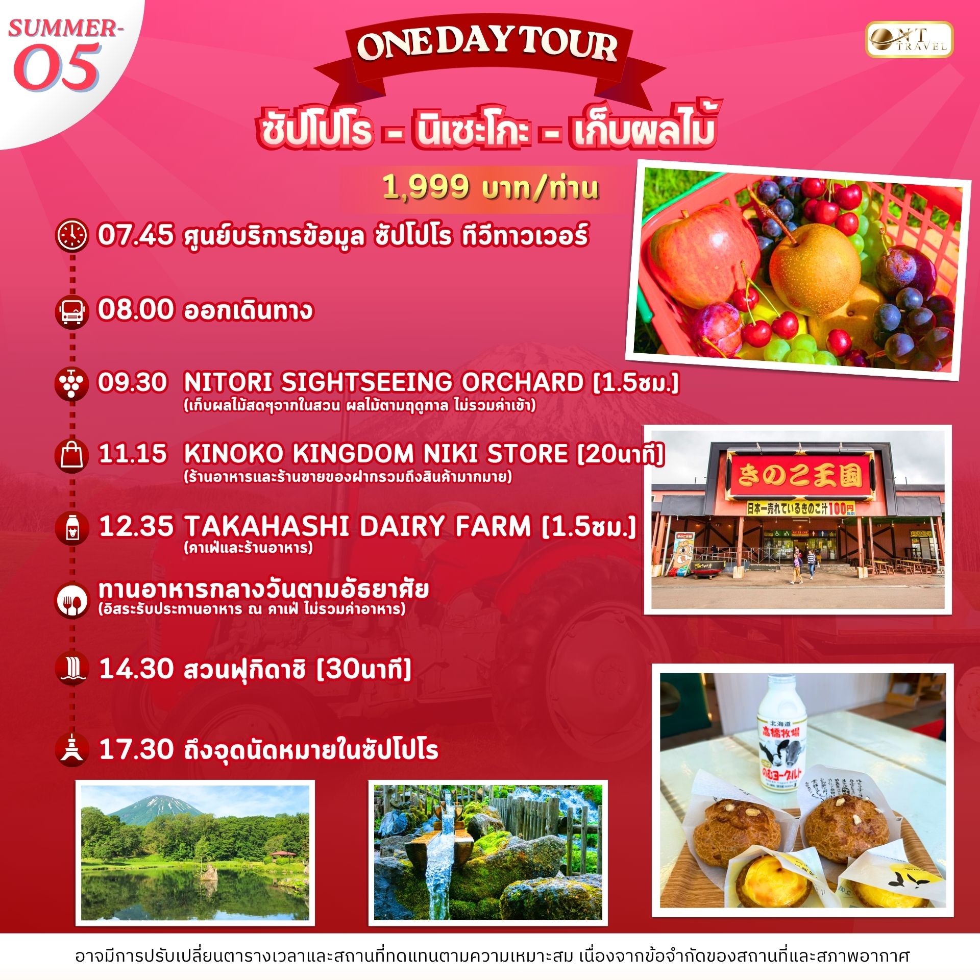 หมายเหตุ : รายการอาจเปลี่ยนแปลงได้ตามความเหมาะสม เนื่องจากสภาวะอากาศ, การเมือง, สายการบิน, โรคระบาด เป็นต้น