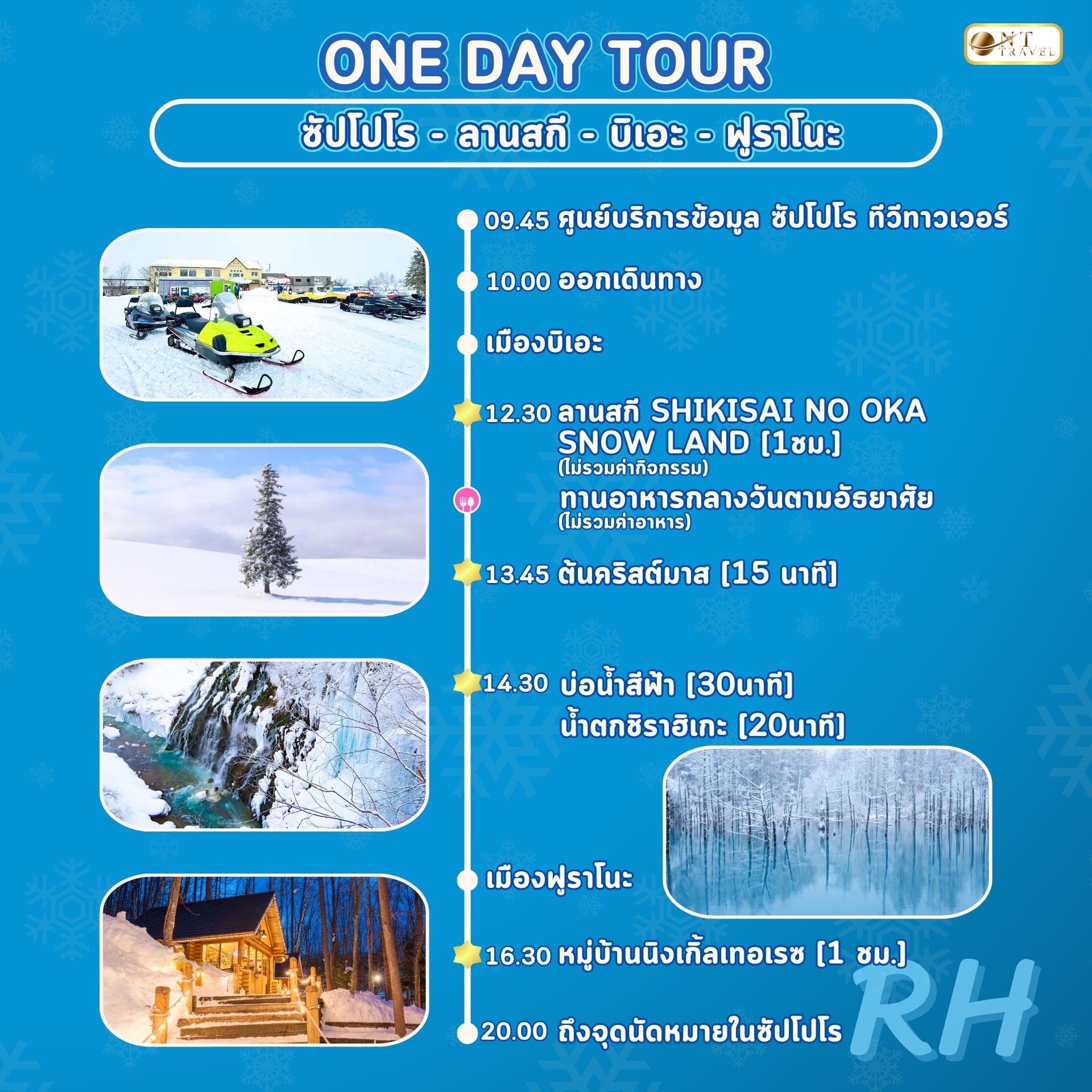 พาท่านสนุกกับ ลานสกีชิคิไซ พาโนราม่า (SHIKISAINO SNOW LAND) [ 1ชั่วโมง] ศูนย์รวมกิจกรรมทางสกี หลากหลาย เหมาะกับทุกเพศทุกวัย หรืออิสระกับการถ่ายรูป วิวสวยๆ แสนโรแมนติก (ไม่รวมค่ากิจกรรมและอุปกรณ์สกี กิจกรรม เช่น SNOWMOBILE / SNOW RAFT / BANANA BOAT / SLED/ TUBE)