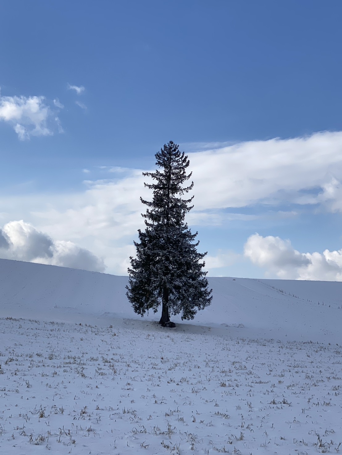 จุดถ่ายรูปชื่อดังของเมืองบิเอะ ตั้งอยู่กลางทุ่งกว้างบนเนินเขา ภาพของต้นสนใหญ่ต้นเดียวที่ยืนโดดเด่นท่ามกลางฉากหลังธรรมชาติ กลายเป็นสัญลักษณ์สำคัญของเมืองนี้