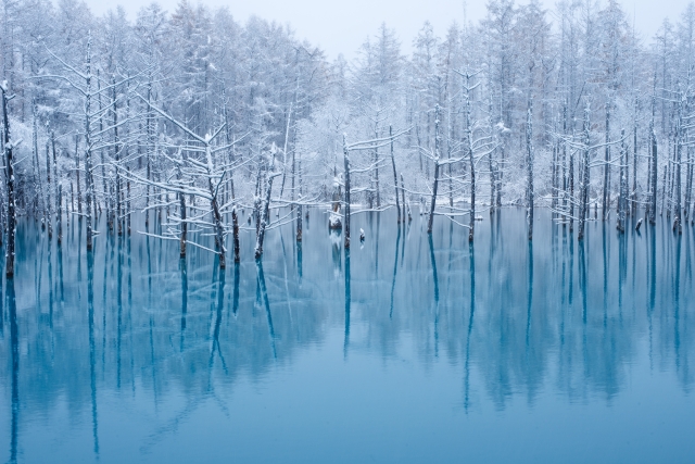 บ่อน้ำที่ถูกกักไว้จากการสร้างเขื่อนเพื่อป้องกันโคลนถล่มบริเวณภูเขาไฟในแถวนั้น การที่น้ำในบ่อมีสีฟ้าสดกว่าบ่อน้ำทั่วไปๆ ก็เป็นเพราะอลูมิเนียมไฮดรอกไซด์จากการปะทุของภูเขาไฟที่อยู่ในน้ำได้สะท้อนกับแสงแดดที่ส่องลงมา ซึ่งคาว่า “Aoi-ike” ในภาษาญี่ปุ่นนั้นแปลเป็นไทยได้ว่า “บ่อน้ำสีฟ้า” มีความสวยงามในทุกฤดู