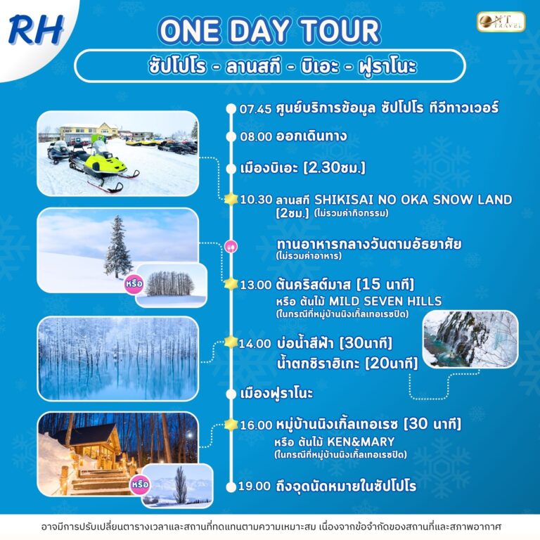หมายเหตุ : รายการเที่ยวอาจเปลี่ยนแปลงได้ตามความเหมาะสม เนื่องจากสภาวะอากาศ, การเมือง, สายการบิน, โรคระบาด เป็นต้น