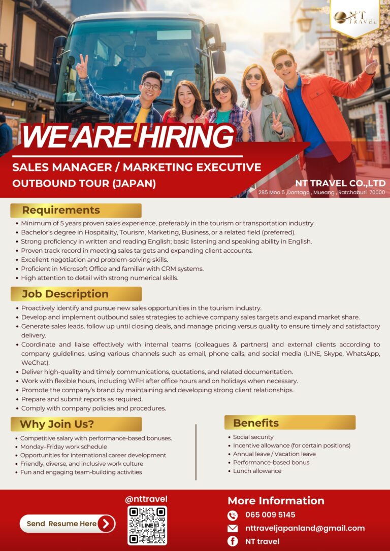 NT TRAVEL เปิดรับสมัครพนักงาน